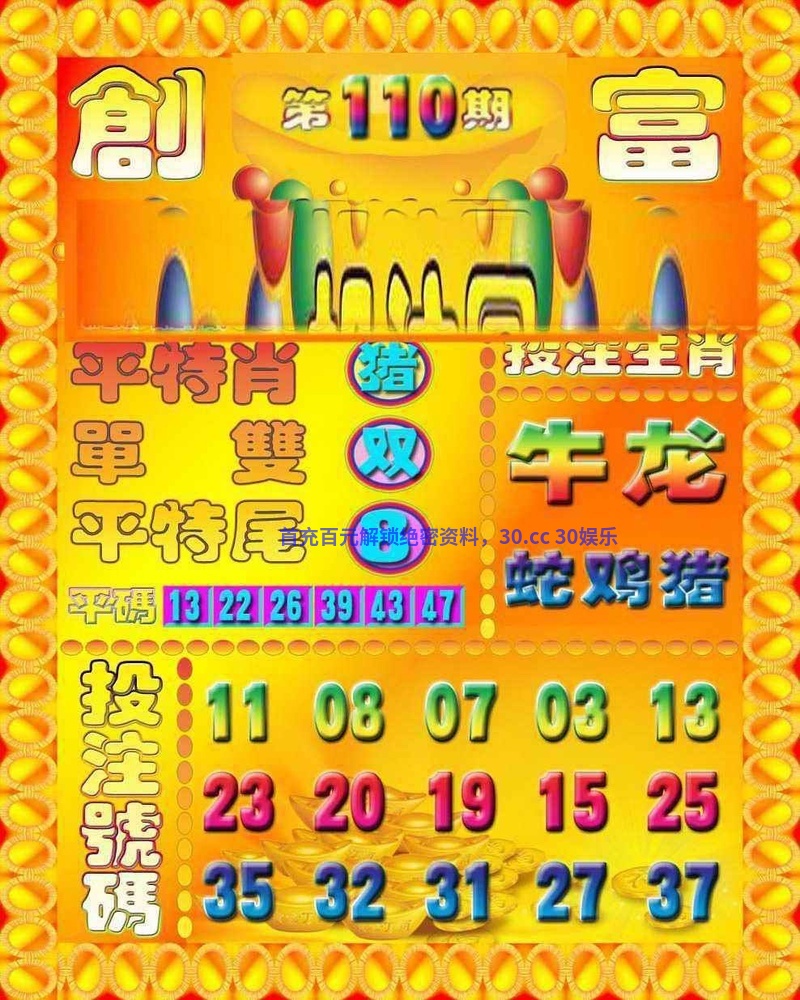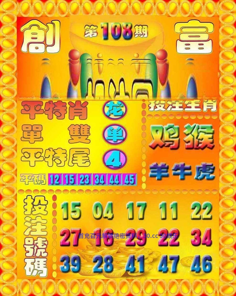 108期:天地两肖【地肖+牛猴】开:猪07错 |